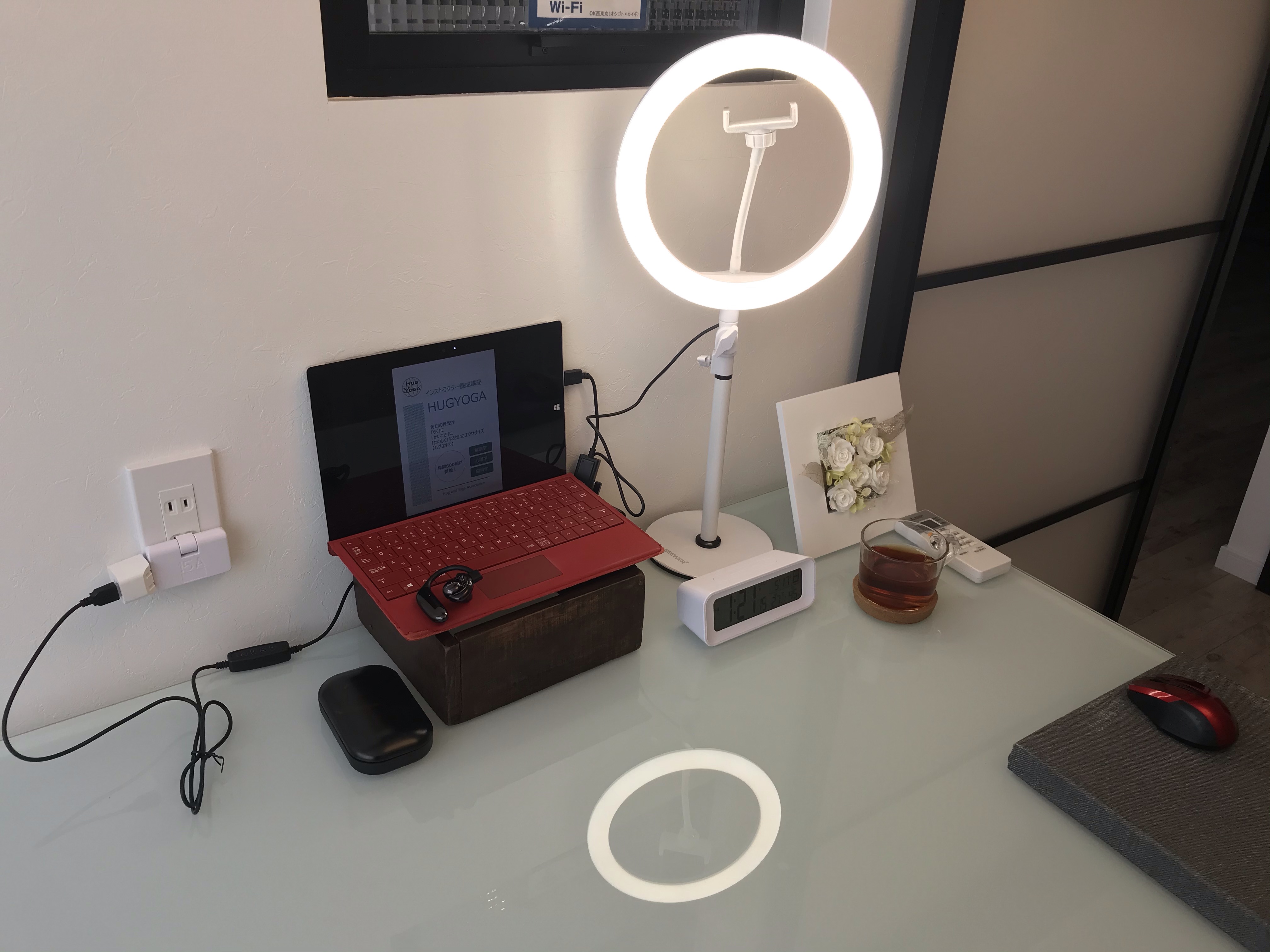 こちらの簡易ライトは無料でお貸出しもしております。zoomの使い方、ライトやマイクの設定に不安がある方も、ご相談に乗りますのでお気軽にお声がけ下さい。