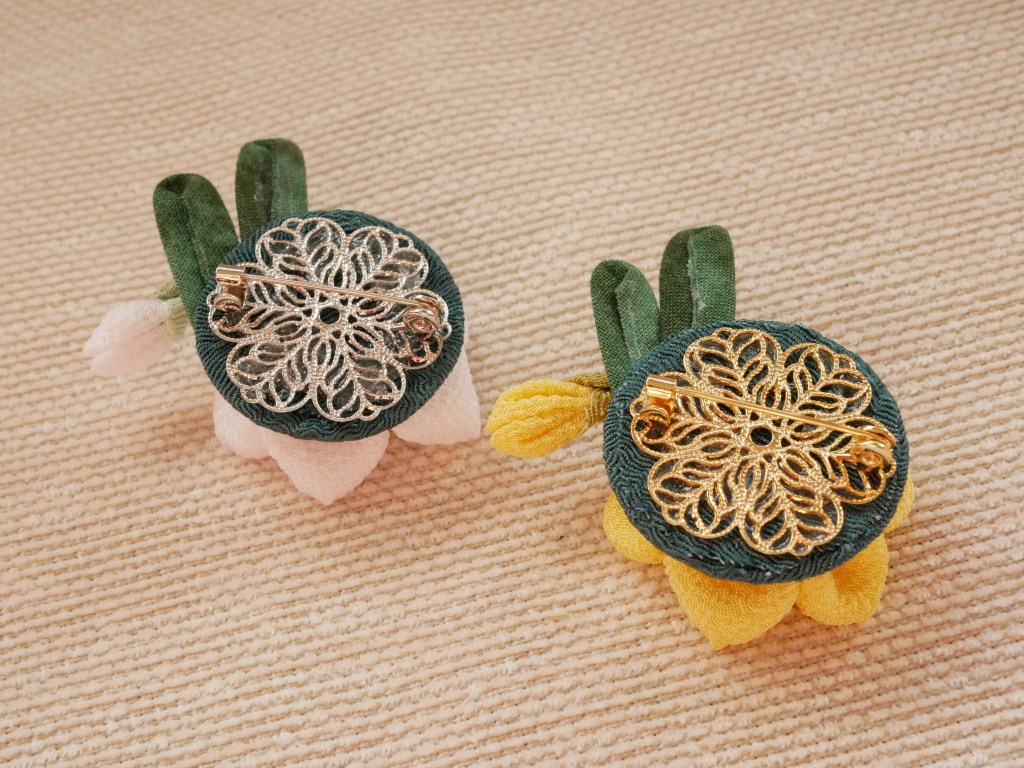 ② 1月季節の花では、水仙のブローチを作ります。お花2つ付きか、お花1つと、つぼみ1つのどちらかを選べます。お申し込みの時にお知らせください。