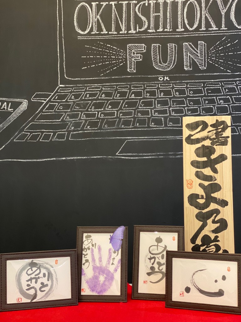 誰でもすぐに味のある字が描けます。幸座ではハガキに作品を描きます。