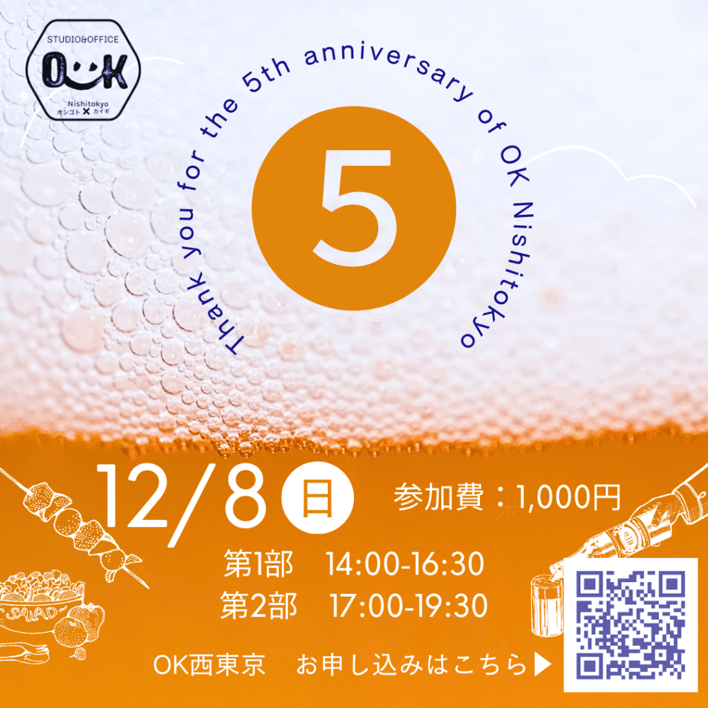 OK西東京5周年記念!みんなで楽しく締めくくりましょう!忘年会のご案内