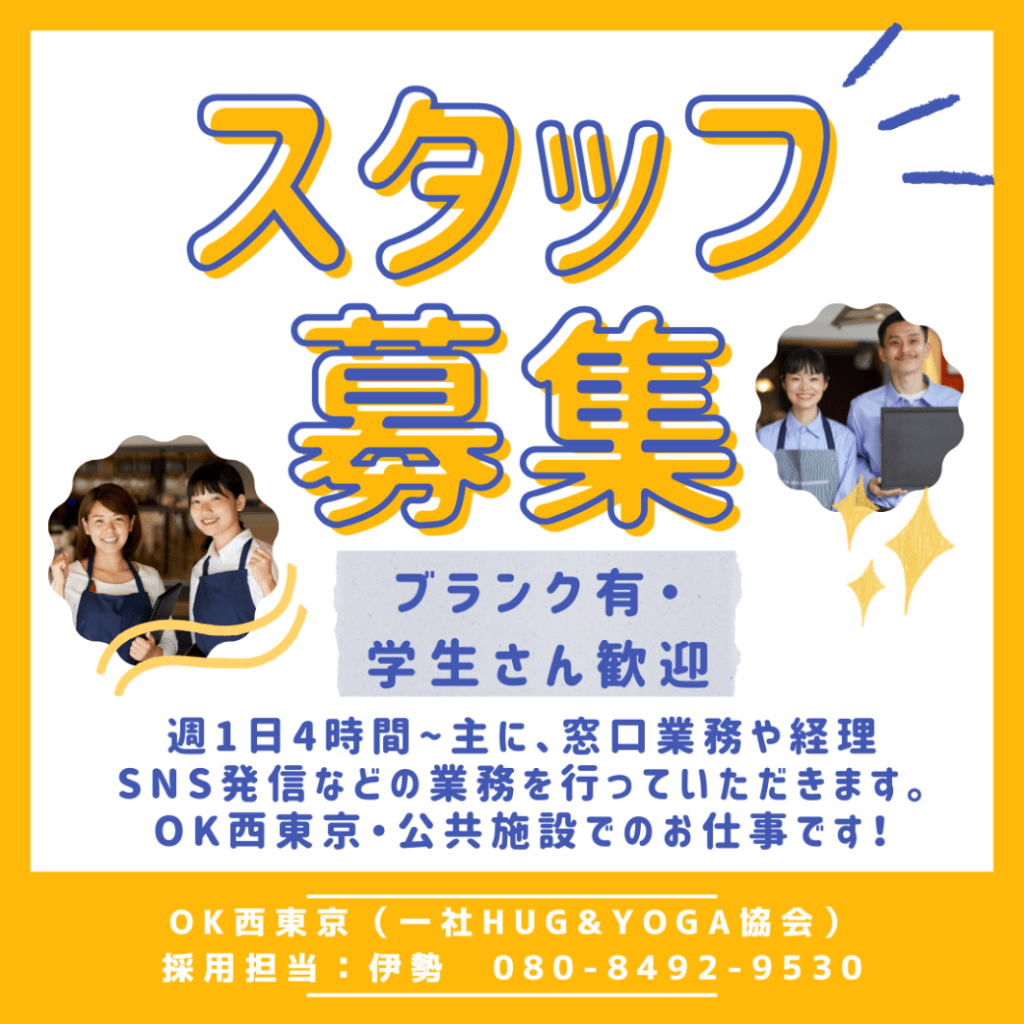 Hug&Yoga協会では、週に1回程度、または不定期でお仕事をしていただける