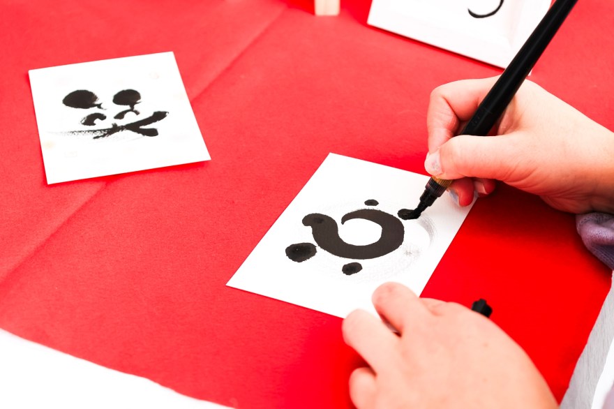 After that,writing your name in kanji using a brush pen. Draw postcards with calligraphy as if you were enjoying art!